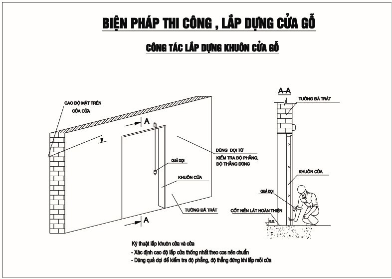 Các bước cụ thể quy trình lắp đặt cửa gỗ :