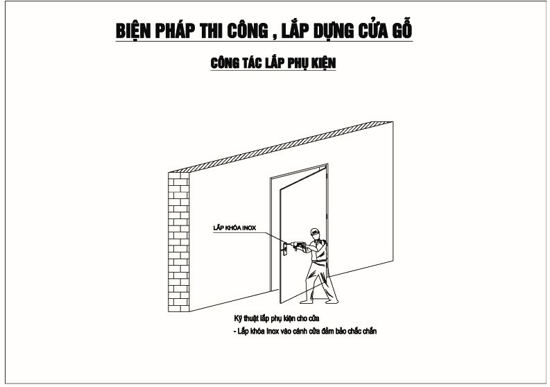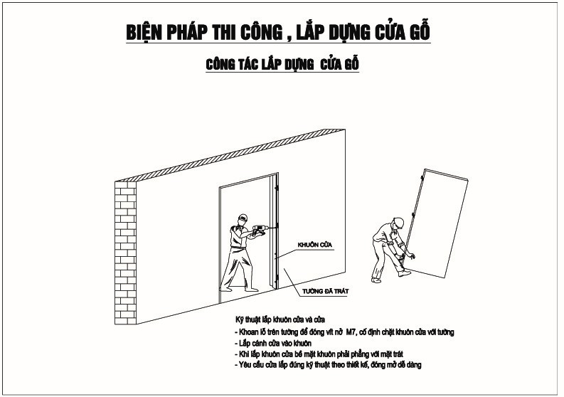 * Quy trình lắp đặt cửa gỗ theo phương án hiện đại (bắn vít)